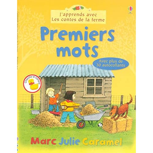 Premiers mots est un ouvrage spécialement destiné aux débutants de la lecture. Avec l'aide de leurs parents et en regardant les images, les jeunes enfants apprennent à reconnaître des mots simples et à faire correspondre les lettres avec les sons. Il y a aussi des dessins à compléter avec plus de 30 autocollants, et deux pages plastifiées réutilisables pour s'entraîner et jouer. Les jeunes lecteurs retrouvent ici les personnages de la collection très populaire Les contes de la ferme. Chaque livre présente une multitude d'activités qui aideront l'enfant dans son apprentissage de la lecture, de l'écriture et du calcul. Dans la même collection : Je compte jusqu 'à 10 J'apprends l'alphabet